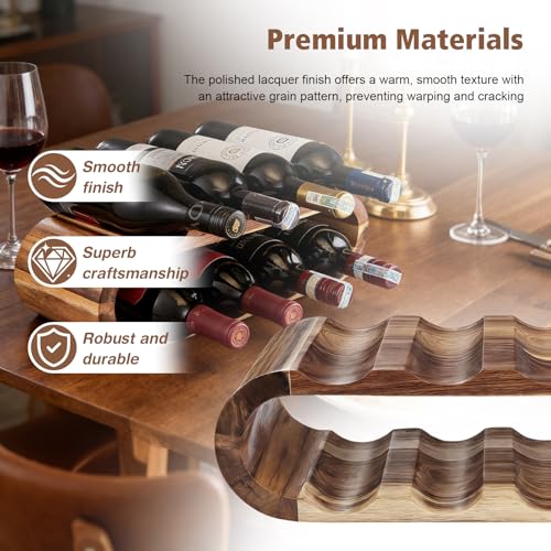 - Premium Material:Made from great wood with an attractive grain, this bottle display rack is both sturdy and built to last. The polished, lacquered finish feels smooth and warm to the touch, and resists warping or cracking even in humid conditions,so it stays looking beautiful year after year