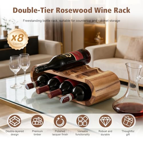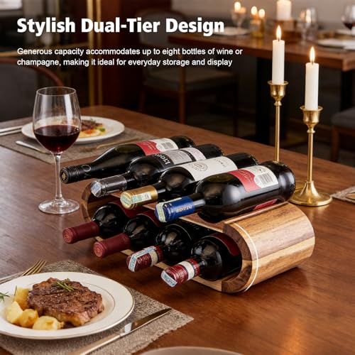 GiHaood - 2-Tier Acacia Wood Wine Rack,8-Bottle Wine Shelf Organizer,Free Standing Wine Bottle Stand for Counter top and Cabinet Storage