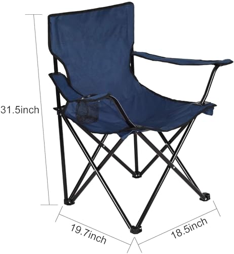 Gikvni - كرسي قابل للطي للتخييم وصيد السمك الحديقة والحديقة والمشي لمسافات طويلة والنزهات والسفر والفناء الخارجي الشاطئ للسفر والتخييم مع حامل اكواب وشنطة حمل ازرق كحلي ستانلس ستيل
