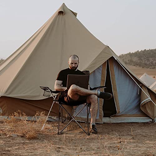 - تصميم مريح ومريح - يتميز كرسي التخييم بإطار فولاذي أنبوبي صلب يمكن طيه على شكل مقص للحصول على قوة وثبات فائقين. نظرًا لأنه مصنوع من الستيل الأنبوبي، فهو أخف من الستيل الصلب، ولكنه قوي بما يكفي لدعم أقصى وزن يصل إلى 100 كغم. كما أن الإطار مطلي بمسحوق لتعزيز مقاومة الصدأ.