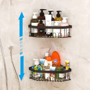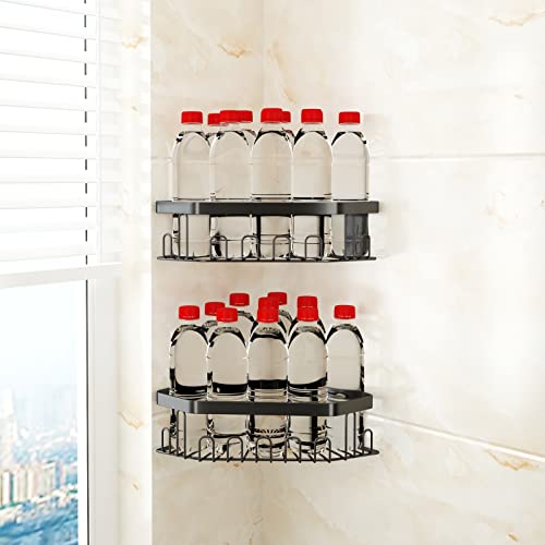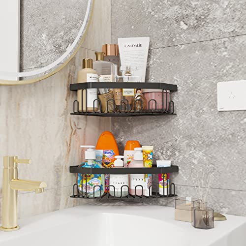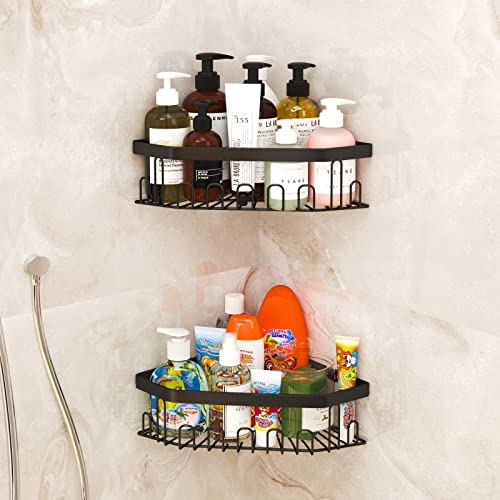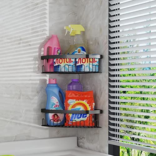 GILLAS - GILLAS 2 Pack Corner Shower Caddy Bathroom Shelf, No Drilling Traceless Adhesive Wall Mounted Bathroom Storage Organizer Basket with Hooks,Black