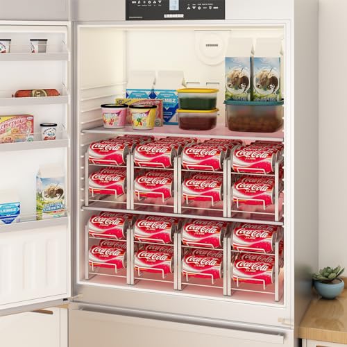 - تصميم قابل للتكديس: ستحصل على 2 منظم المشروبات نفسه. يمكن استخدام كل منظم رف صودا بمفرده أو تكديسه فوق الآخر للتخزين المريح. استخدمه لتخزين علبة الصودا وعلب الطعام المتنوعة