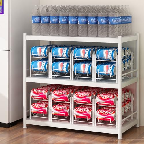GILLAS - جيلاس رف منظم لعلب الصودا للمخزن، حامل توزيع علب المشروبات الغازية القابلة للتكديس للثلاجة والخزانة، لون ابيض، عبوة من قطعتين