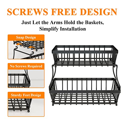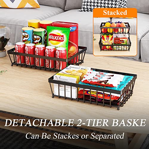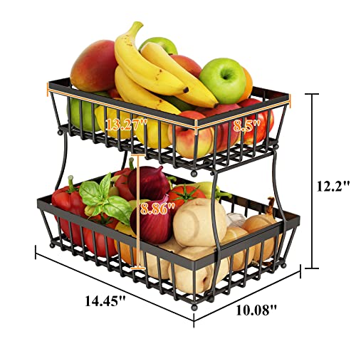 GILLAS - GILLAS 2 Tier Fruit Basket for Kitchen, Vegetable Bread Basket, Fruit Basket, Storage Stand, Rectangular Metal Wire Basket, Medium Black