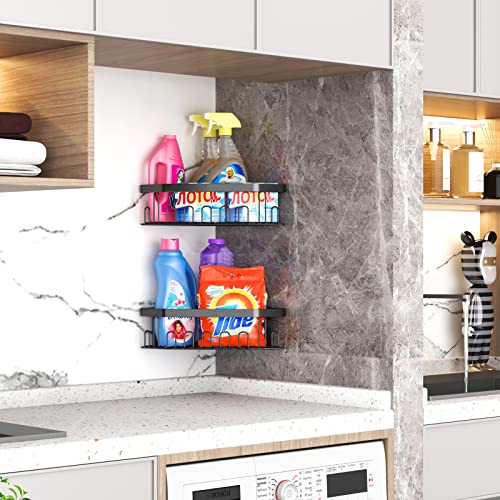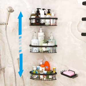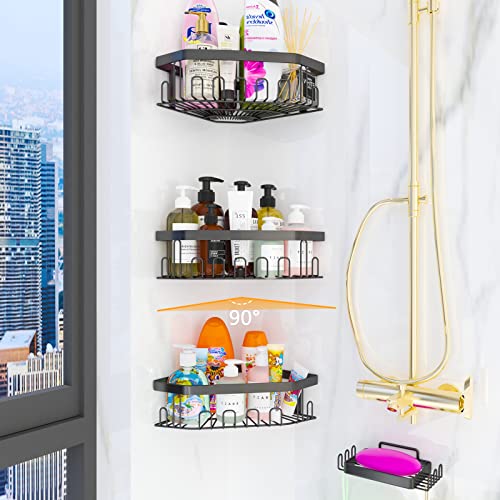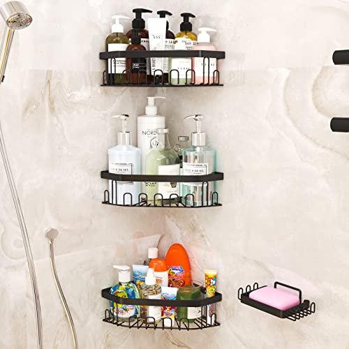 GILLAS - GILLAS 4 Pack Corner Shower Caddy Bathroom Shelf, No Drilling Traceless Adhesive Wall Mounted Bathroom Storage Organizer Basket with Hooks,Black