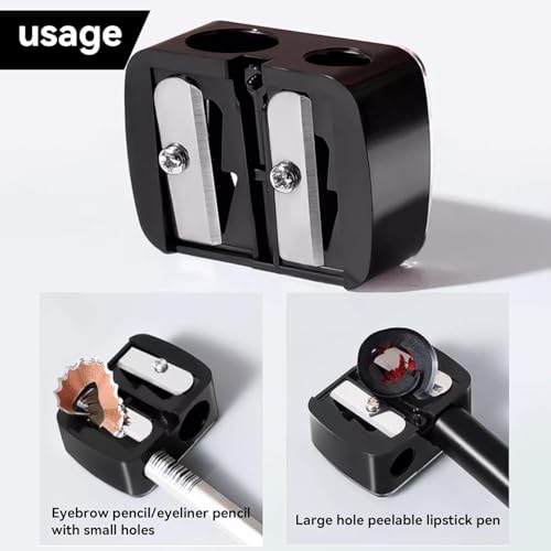 - Dual Hole Precision Design:This makeup sharpener features 8mm & 11mm dual holes, perfectly fitting thick and thin cosmetic pencils – from eyebrow pencils and lip liners to jumbo eyeliners and concealer sticks. Achieve sharp, precise tips for flawless makeup application.
