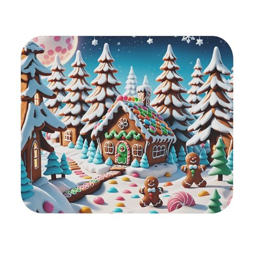 Generic - Gingerbread House Mouse Pad – Cute Christmas Gingerbread Village with Snowy Trees & Candy Path, Holiday Desk Mat with Non-Slip Rubber Base