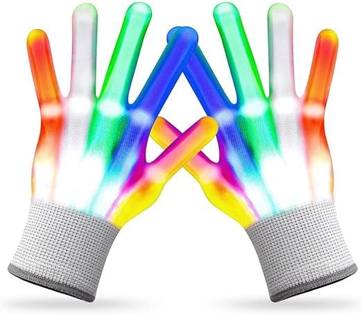 ginoya brothers - جوانتي ليد (مقاس للبالغين)، قفازات مضيئة للأصابع وأوضاع متعددة الألوان وامضة ملونة، ألعاب أطفال لحفلات الكريسماس والهالوين من جينويا براذرز (24 سم)
