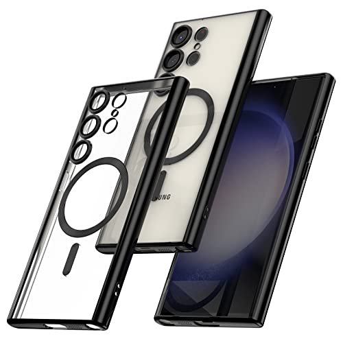 - Compatible and designed: this clear case has been specially designed for Samsung Galaxy S23 Ultra 5G. ! Transparent back, black edge with camera lens made of metallic texture and magnetic ring edge, which shows the original beauty of the phone and makes the phone more advanced and fashionable.