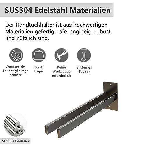 Giookuj - Self-Adhesive Towel Rail SUS304 Stainless Steel Material Towel Rail Double Towel Rail No Drilling Black for Kitchen, Bathroom