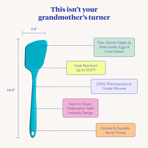 GIR - GIR: Get It Right Silicone Kitchen Spatula Turner - Non toxic cooking utensils for Nonstick Cookware, Cooking and Baking, Mini - 11IN - Teal