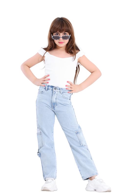 JBS Denim - بنطلون جينز باجي 4034 بناتي تلجي اللون