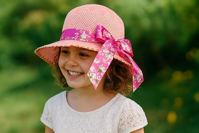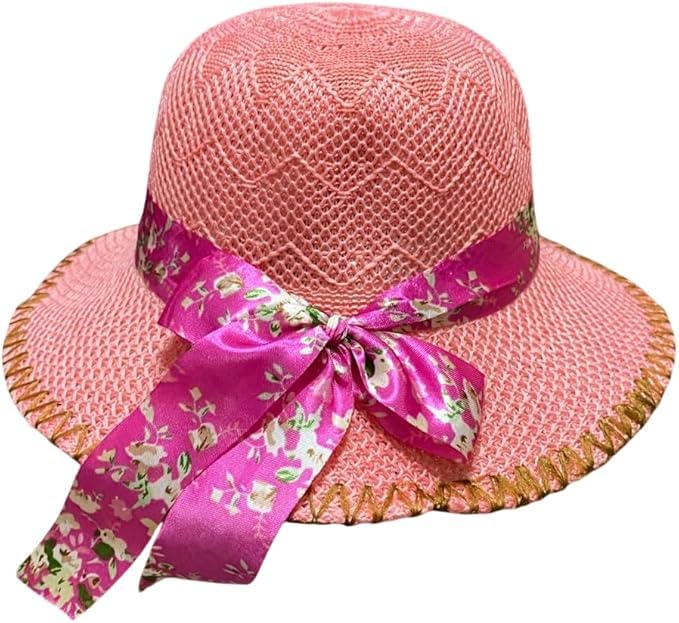 Generic - Girls Beach Hat - Summer Natural Material - Light - Chin Strap - Bow - Outdoor