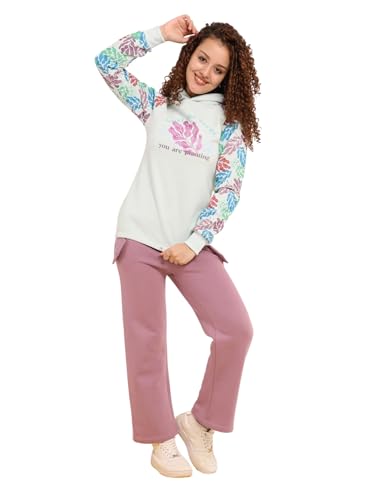 Generic - طقم رياضي للبنات بتصميم أوراق ملونة، بلوزة بأكمام طويلة وبنطلون واسع