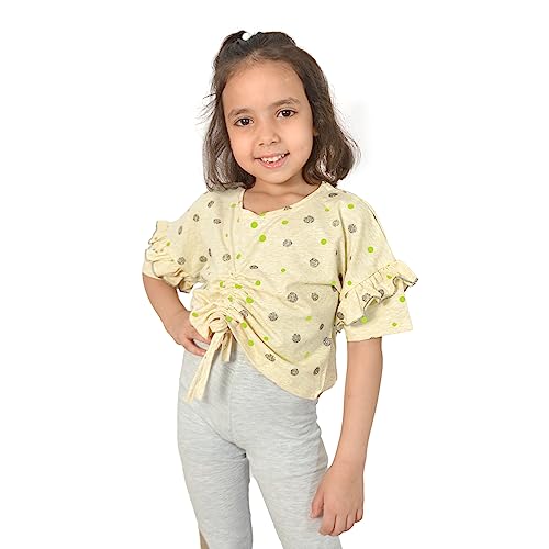 Generic - Girls Cotton Short Sleeve T-Shirt (Beige Green, 3Y)
