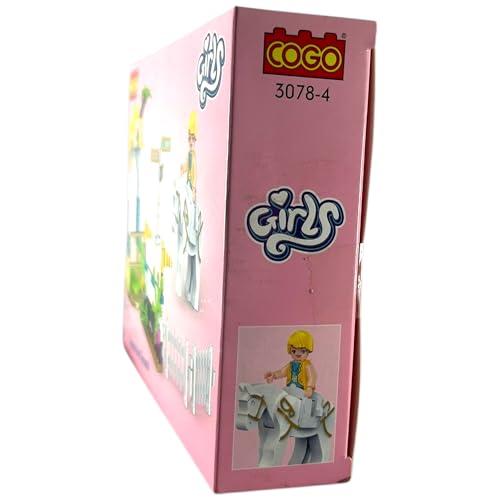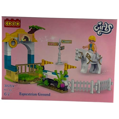 - 97-PIECE EQUESTRIAN SET: COGO Girls Equestrian Ground building blocks set includes 97 pieces to construct a detailed horse stable scene with white horse figure, rider minifigure, and accessories, designed for ages 6 years and above