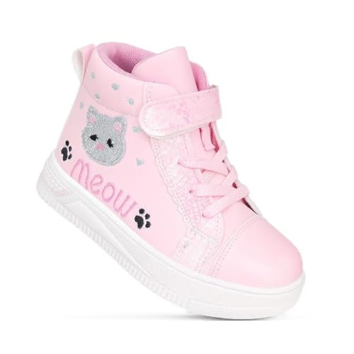 Generic - Girls High-Top Sneakers, Embroidered Design, Lightweight & Flexible, Non-Slip Sole, Easy On with elastic Lace & latches (Meow)