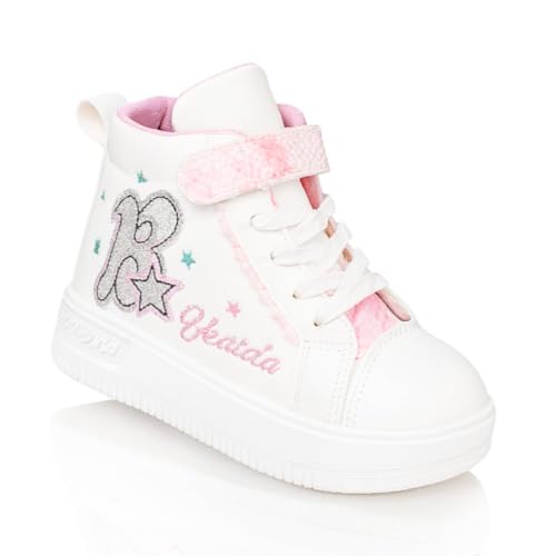 Generic - Girls High-Top Sneakers, Embroidered Design, Lightweight & Flexible, Non-Slip Sole, Easy On with elastic Lace & latches (R)