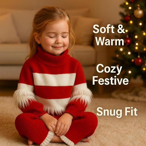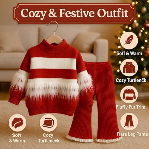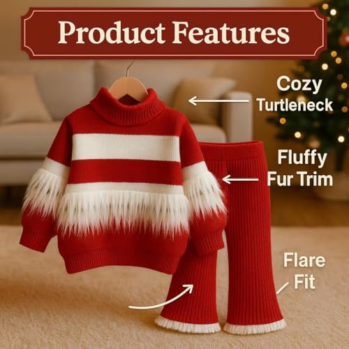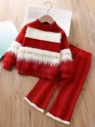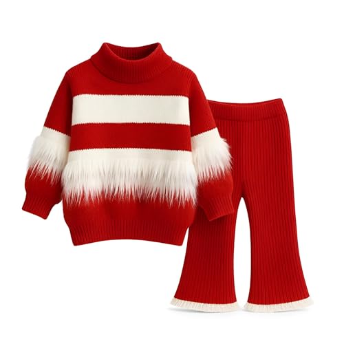 Generic - طقم سويتر محبوك للبنات - مثالي للخريف والشتاء، لون سادة، زي مريح من قطعتين مع بنطلون بارجل عريضة لراحة انيقة