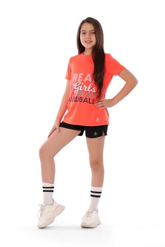ANJA - Girls Neon Orange Real Girls Play Handball T-Shirt – Sporty Athletic Top