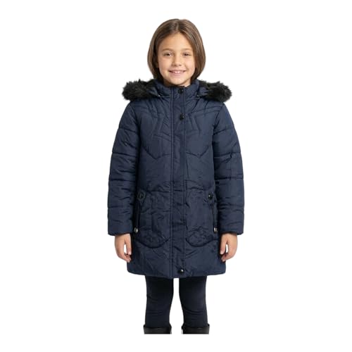 Generic - Girls Quilted Parka Coat, Faux Fur Trim Hood, Long Puffer Jacket, Winter Outerwear