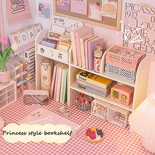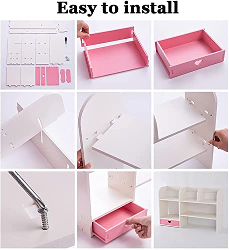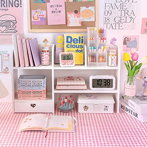 CAZARU - Girls Room Desk Organizer Wooden Desk Storage Rack Display Shelf for Office Kitchen Bathroom Makeup, Countertop Rack with Drawer D Holder