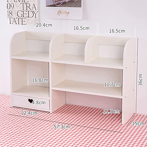 - ✔ Space saving and new drawer design: the shelf fits perfectly with any desk or counter with large storage capacity. The two drawers with cut-out handles are perfect for storing tacks, stamps, clips. Open shelves and compartment offer plenty of space To Corral Books,Office Supplies,Photos,Plants and decorations.
