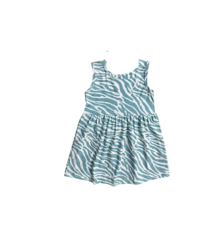Generic - فستان صيفي بدون اكمام للبنات، مطبوع عليه حمار وحشي بلون ازرق مخضر وابيض، قطن