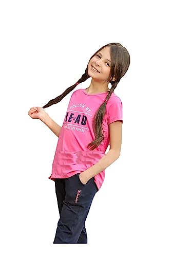 Generic - بيجامة قطن صيفية للبنات (7-8، ملابس منزلية، فوشيا)