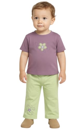 Generic - Girls Summer Outerwear Set Cotton 2 Years - Purple T-Shirt and Green Pants - Soft Flower Embroidery - Comfortable and Stylish Baby Wear