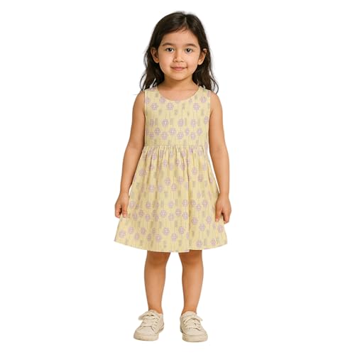 Generic - فستان بناتي صيفي بدون أكمام، قطن مزين بأزهار وردية، لون كريمي فاتح، مقاس 1-4 سنوات