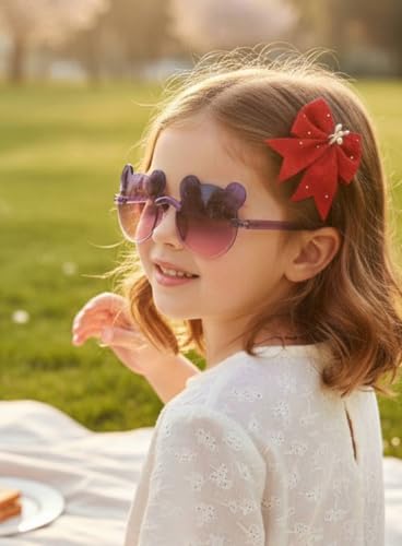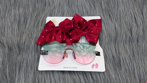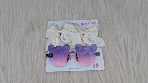 Generic - نظارة شمس بناتي | نظارة شمس للبنات تأتي مع 2 توكة شعر على شكل فيونكة | ألوان متعددة