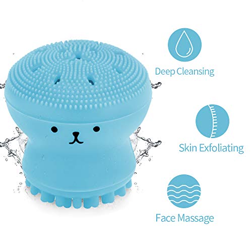 - ALL-IN-ONE Face Cleansing Brush - This face scrubber is in the shape of a cute little octopus. The combination of sponge and silicone bristles can easily bubble the facial cleanser and gently clean every pore on the face.