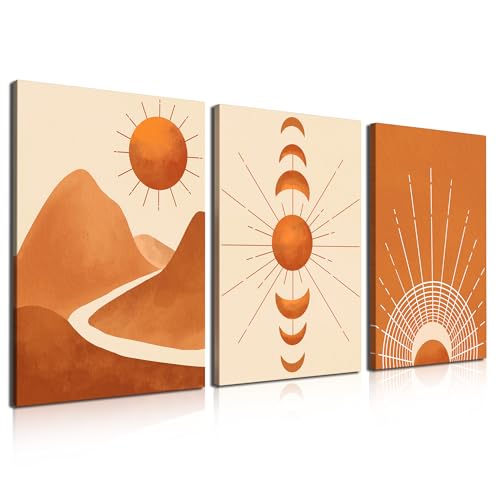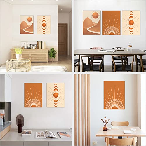 - 【تابلوه ديكور الحائط بنمط بوهو】رسوم توضيحية تجريدية لنباتات الصحراء الهندسية في منتصف القرن والشمس والطبيعة والديكور البوهيمي الحديث لغرفة المعيشة وغرفة النوم والمكتب وفي أي مكان يمكنك التفكير فيه.