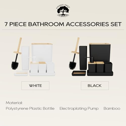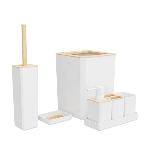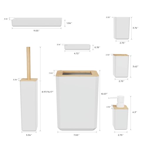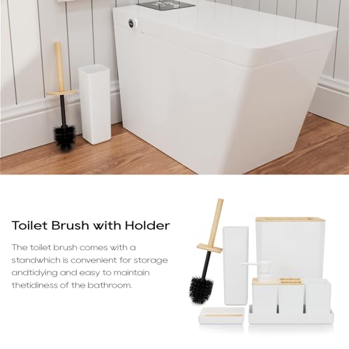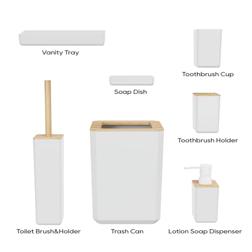 GIVINGTREE - GIVINGTREE Bamboo Bathroom Accessory Set, 7 Pieces Bath Set- Soap Dish Vanity Tray Toothbrush Holder Rinse Cup Lotion Bottle Trash Can Toilet Brush - Practical Toilet Kit for Home Washing Room,White