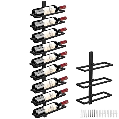 Giyiprpi - 3 Pieces Wall Wine Rack Bottle Rack for 7 Bottles, Metal Wine Rack Hanging Wall Mounted Wine Bottle Shelves Wall Shelf Wine Storage Rack for Kitchen Dining Room Bar (Levels 9)