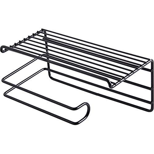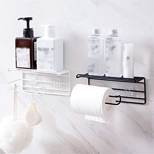 Spaceshoop - رف تخزين معلق على الحائط من الحديد المطاوع على الطراز الأوروبي من جي جياوي، حامل بكرات مناديل الحمام، رف جداري للحمام، حل تخزين مثالي (لون اسود)