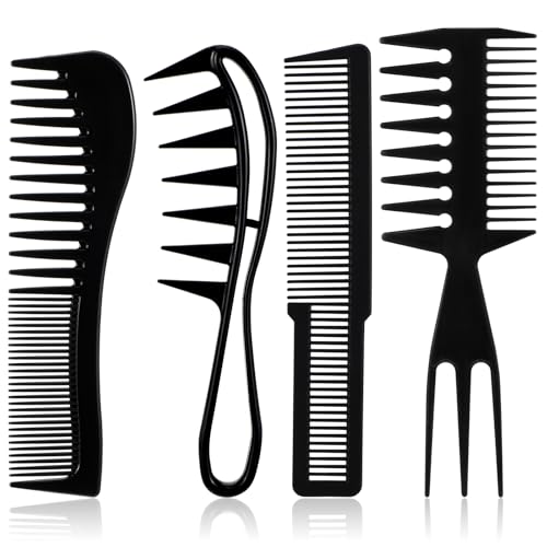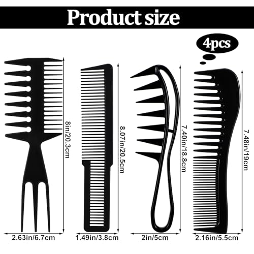 Gjinxi - مجموعة امشاط تصفيف الشعر للرجال من جينكسي مكونة من 4 قطع باسنان عريضة وذيل مزدوج الجانب، فرشاة شعر احترافية، ادوات تصفيف الشعر، ادوات تصفيف الشعر بتصميم امريكي افريقي، اكسسوارات حلاقة