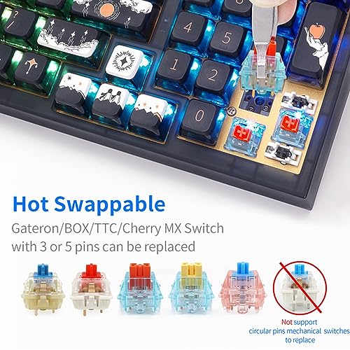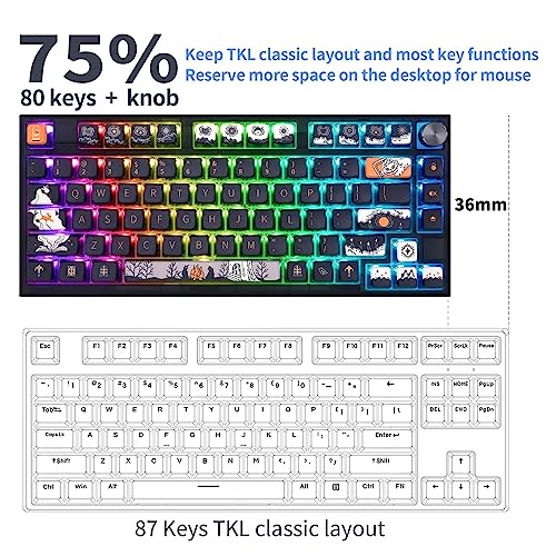 - 【75% Hotswap Keyboard with a Rotary Knob】Skyloong GK75 keyboard is equipped with hot swappable terminals, with which you can install optical switches directly without soldering. Being 75%, the keyboard turns the home clusters into one column of the commonly used home/delete/pgup keys, saving much space for the mouse. Adding a rotary in the end of the F row, the keyboard can fulfil changing volume by simply rotating left and right.