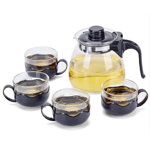 عام - طقم ابريق شاي من الزجاج والبلاستيك مع 4 اكواب، 700 مل (اسود)