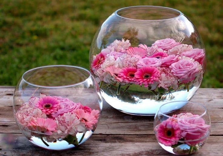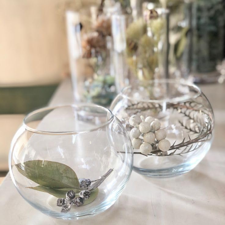 Generic - Glass Ball Vase Set of 2 Different Pieces - Clear Glass Bowl for Home Decoration Suitable for Parties and Occasions