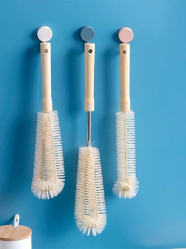 - FUNCTIONAL VERSATILE DESIGN: Natural long wooden handle cleaning brush is comfortable to hold, perfect for cleaning bottles, cups, jars and waves that are hard to reach