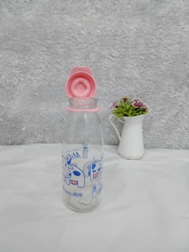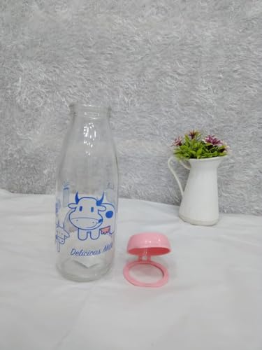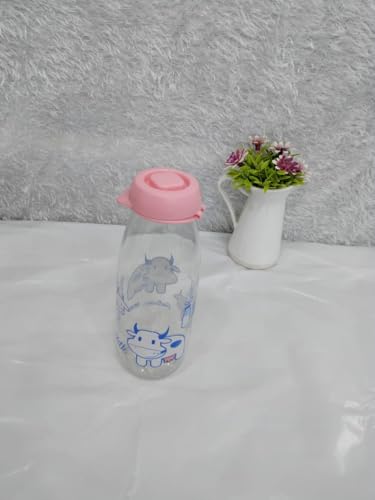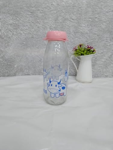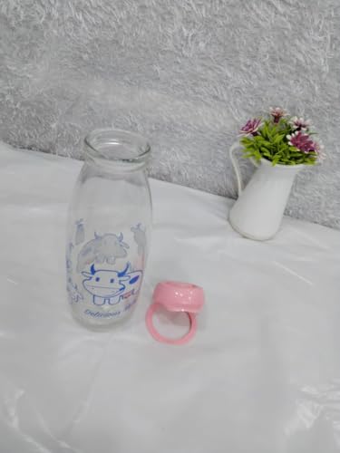 Generic - زجاجة مصنوعه من الزجاج ، بتصميم رسومات لبقرة صغيرة مرسومة بأسلوب مرح . الزجاجة مزودة بغطاء لون وردي فاتح، سعة 500مليلتر