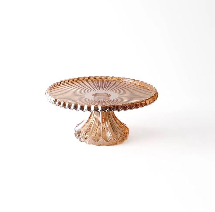 - تصميم أنيق: يتميز حامل الكيك الزجاجي الوردي الجميل بتصميم قاعدة كلاسيكي مع نقشة مضلعة مزخرفة على سطح الطبق وتفاصيل حافة مطرزة مزخرفة للحصول على مظهر مستوحى من الطراز العتيق.