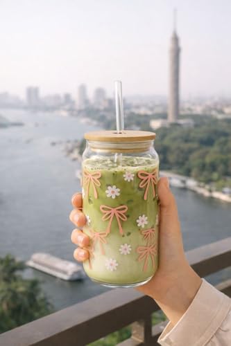- * Modern glass can cup perfect for iced coffee, matcha, juice, and cold drinks