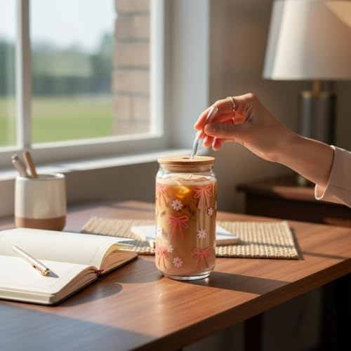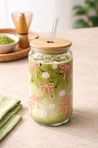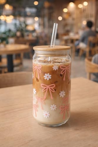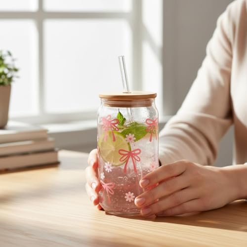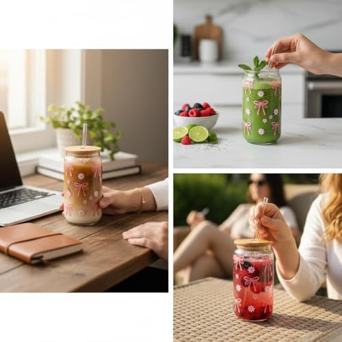 Generic - Glass Can Drinking Cup with Bamboo Lid and Straw – Reusable Clear Glass for Iced Coffee, Matcha & Cold Beverages