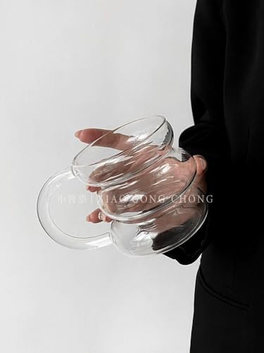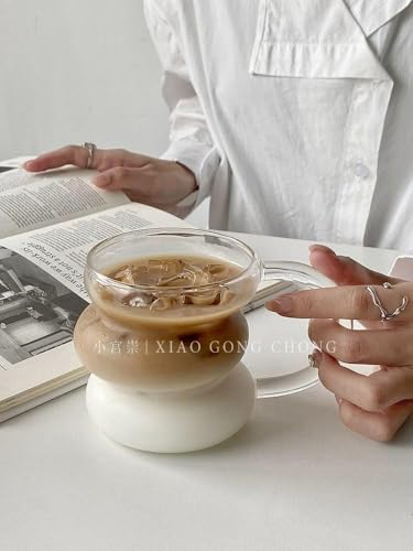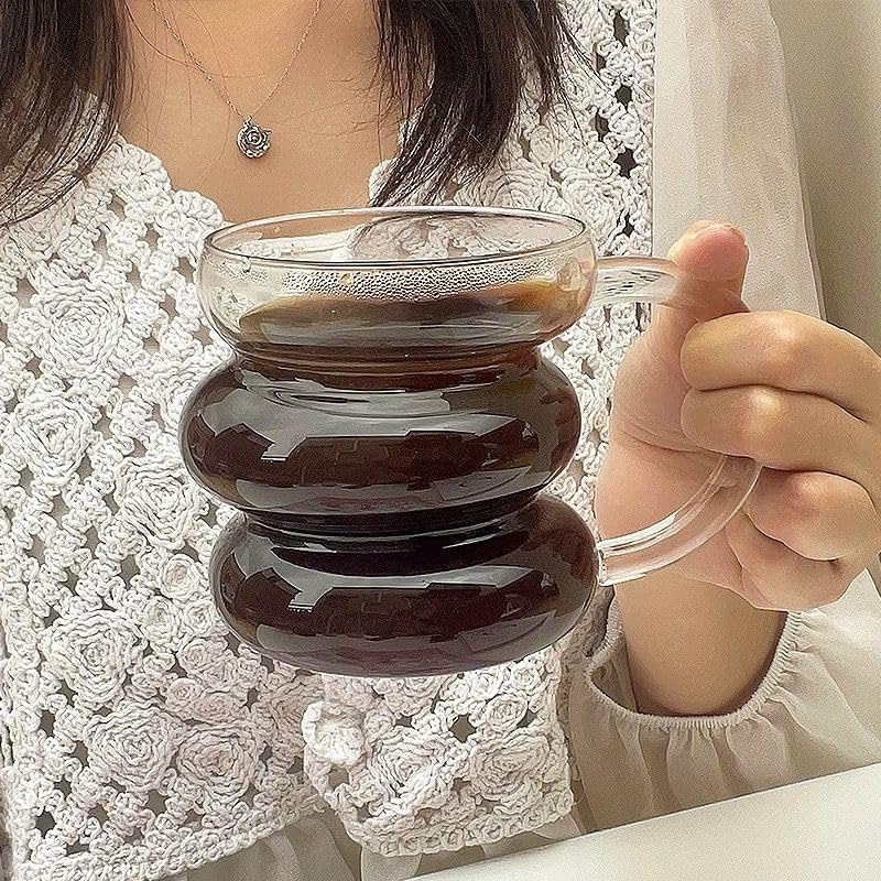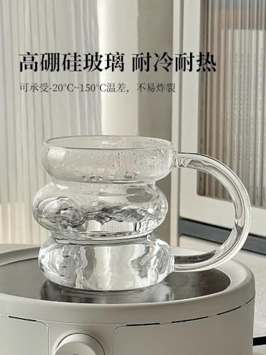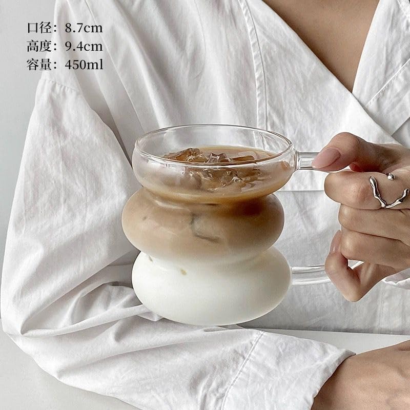 Generic - Glass Coffee Cup Heat Resistant High Borosilicate Direct Fire Cup with Handle American Ice High Look Transparent Latte Water Cup Large Capacity (Shape 1)