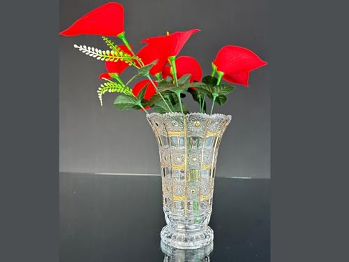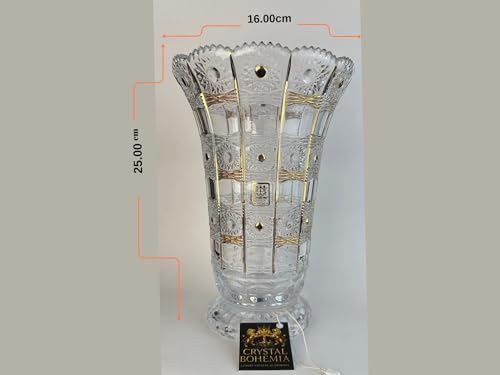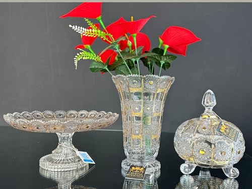 Generic - Glass Crystal Gift Set with Gold Motifs, 3 Pieces, Vase, Plate, Bonniera with Lid