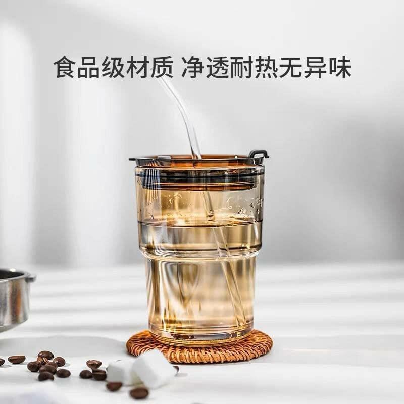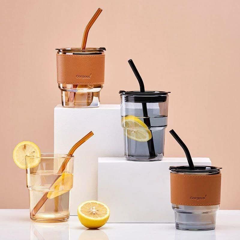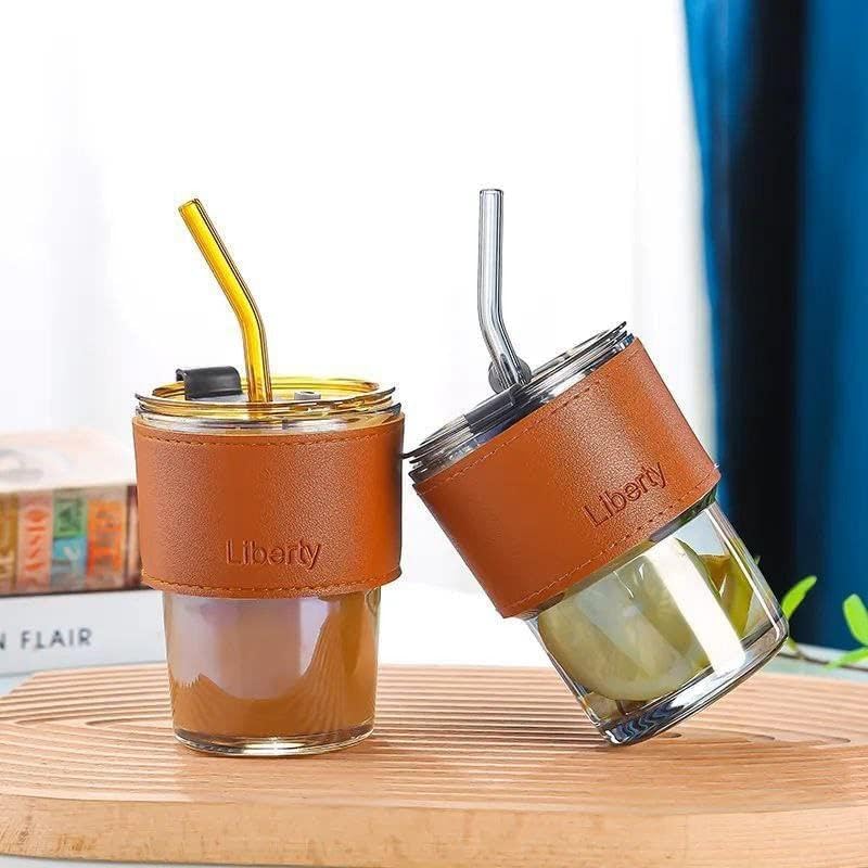 Generic - Glass Cup (450ml) with Stylish Leather Cover, Palmo Glass and Shalemo with Silicone Reservation and Lid (100 Pieces)