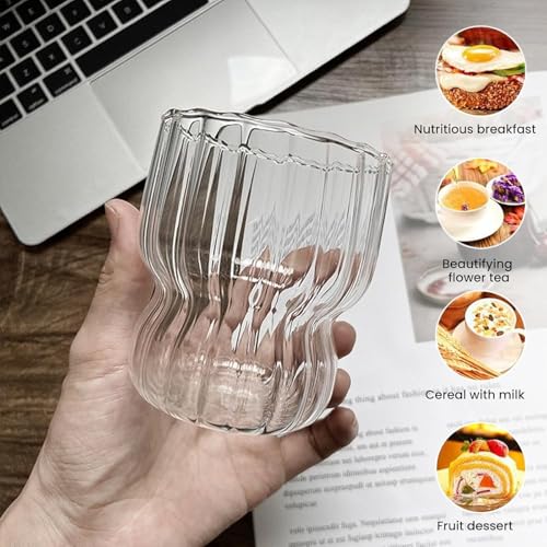 - ☕ تصميم مضلع أنيق: كوب زجاج مضلع شفاف يضفي لمسة عصرية وأنيقة على منزلك أو مكتبك أو مطبخك.